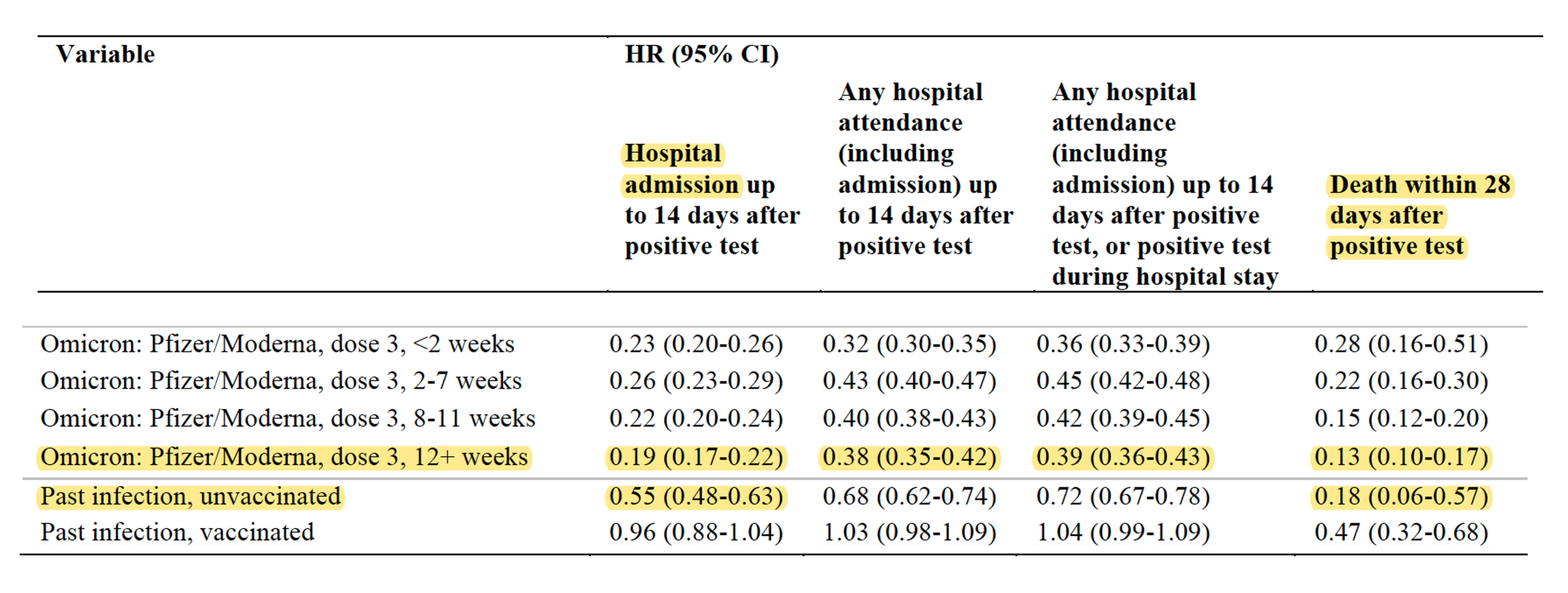Eric Topol On Twitter Mrna Booster Protection Vs Omicron For 12 Weeks Hospitalization 81 Death 87 Point Estimates See Table For Hr 95 Confidence Intervals Infection Unvaccinated Vs Omicron